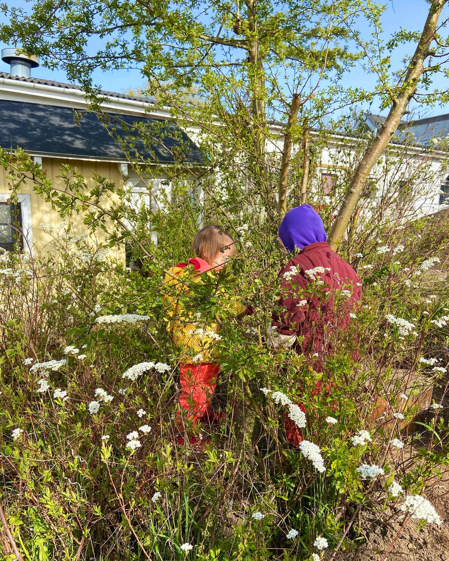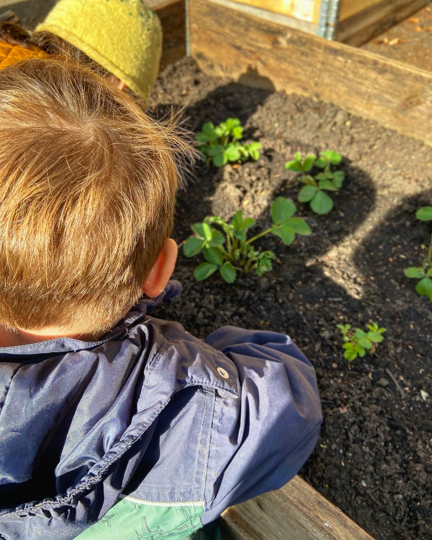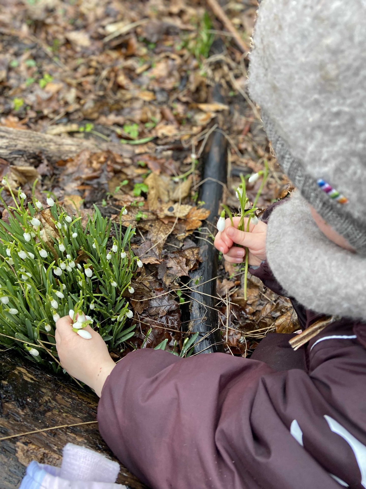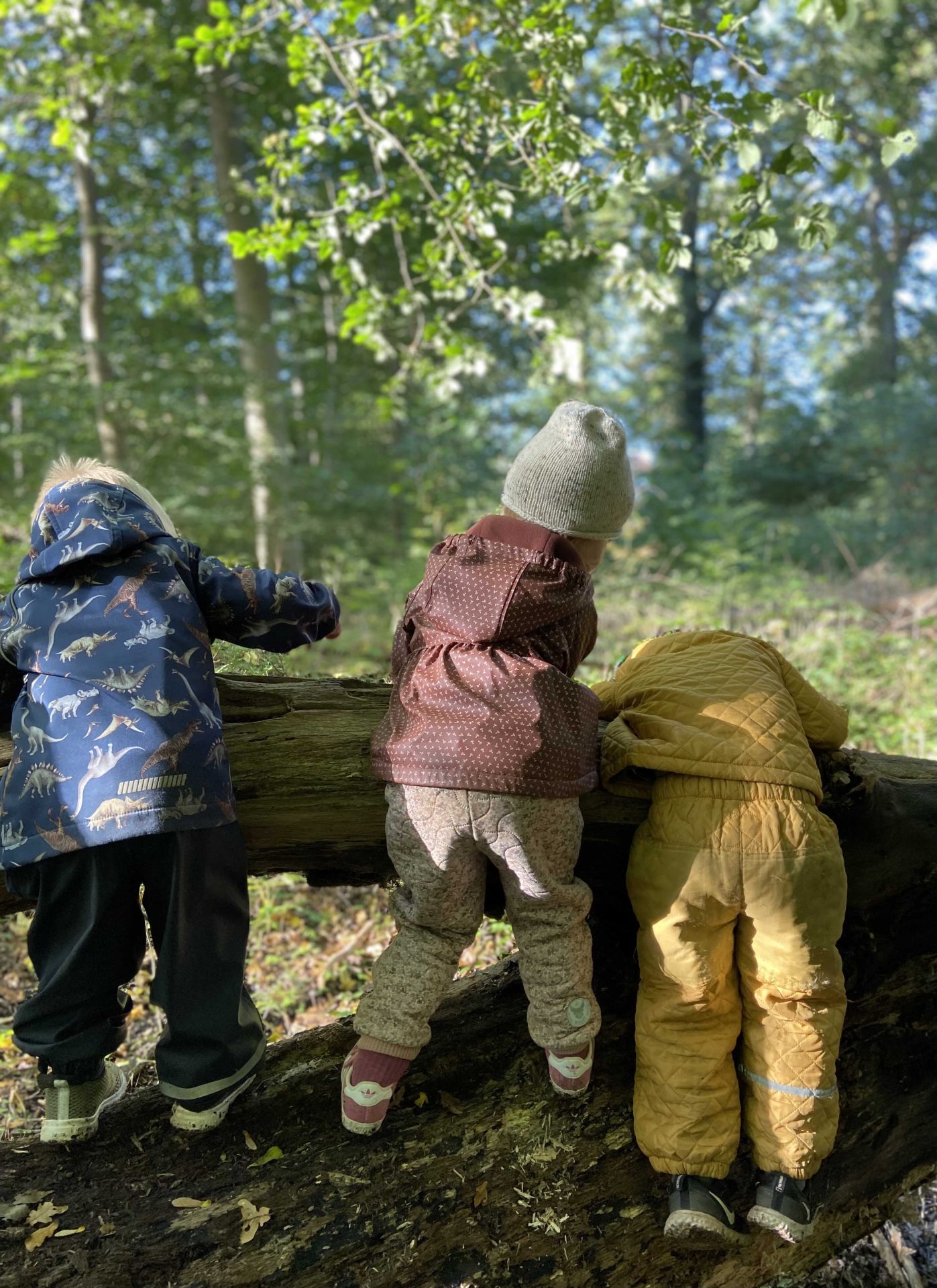 Vi har tæt adgang til skoven, som byder op til mange timers eventyr, bevægelse og læring. For os er udetimerne essentielle, og vi nyder også at lave mad på bål og hente friske grøntsager fra vores egen køkkenhave.